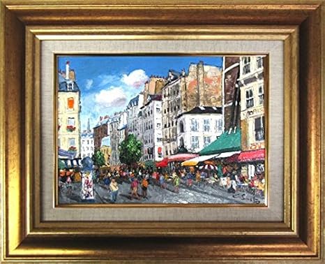 Amazon.co.jp: 斉藤要『リュードビィュシー通り(F4号)』油彩画 風景画 ヨーロッパ 街並 カフェ カフェテラス【油絵 絵画】【B4122】: ホーム&キッチン