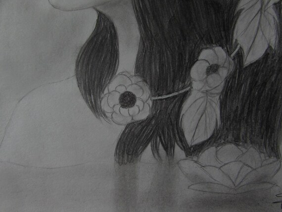Girl In A Lake Graphite Pencil Drawing Fine Art Realistic Art Etsy