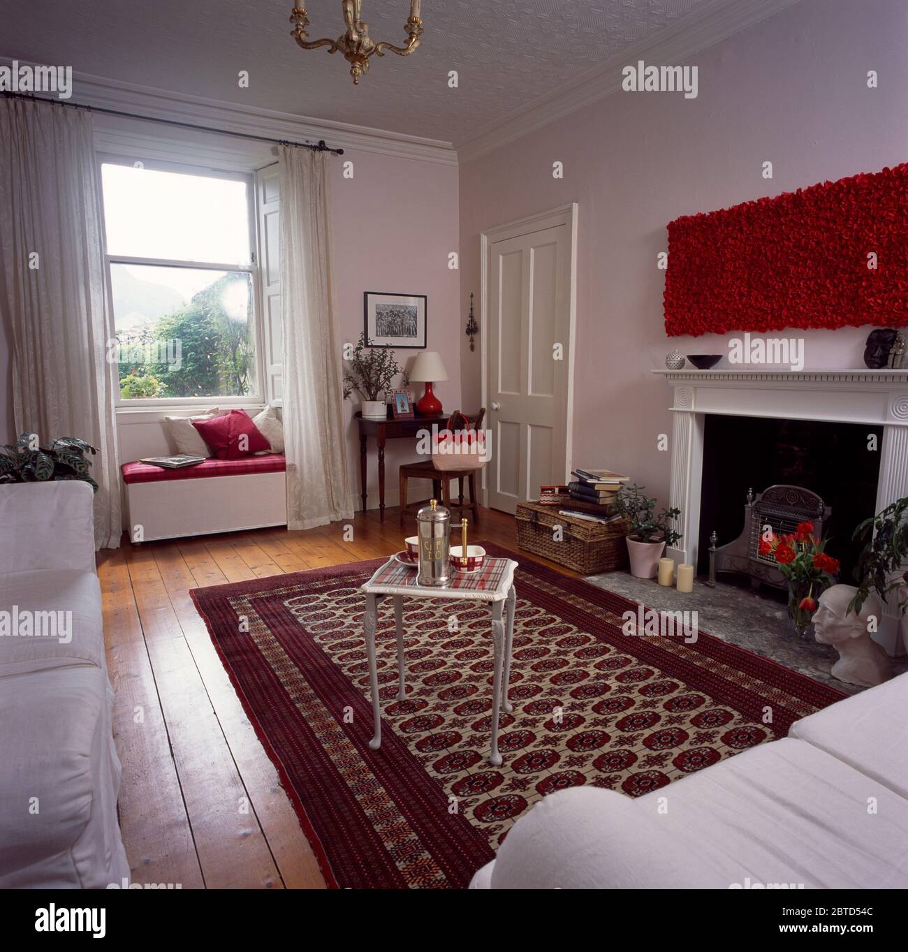 Oriental Rug On Floor In White Living Room With Window Seat Stock Photo Alamy