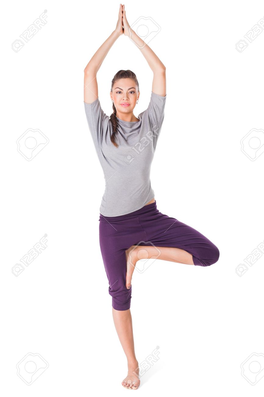 Junge Frau Macht Yoga-Übung Baum-Pose Auf Weißem Hintergrund Lizenzfreie Fotos, Bilder Und Stock Fotografie. Image 18353634.