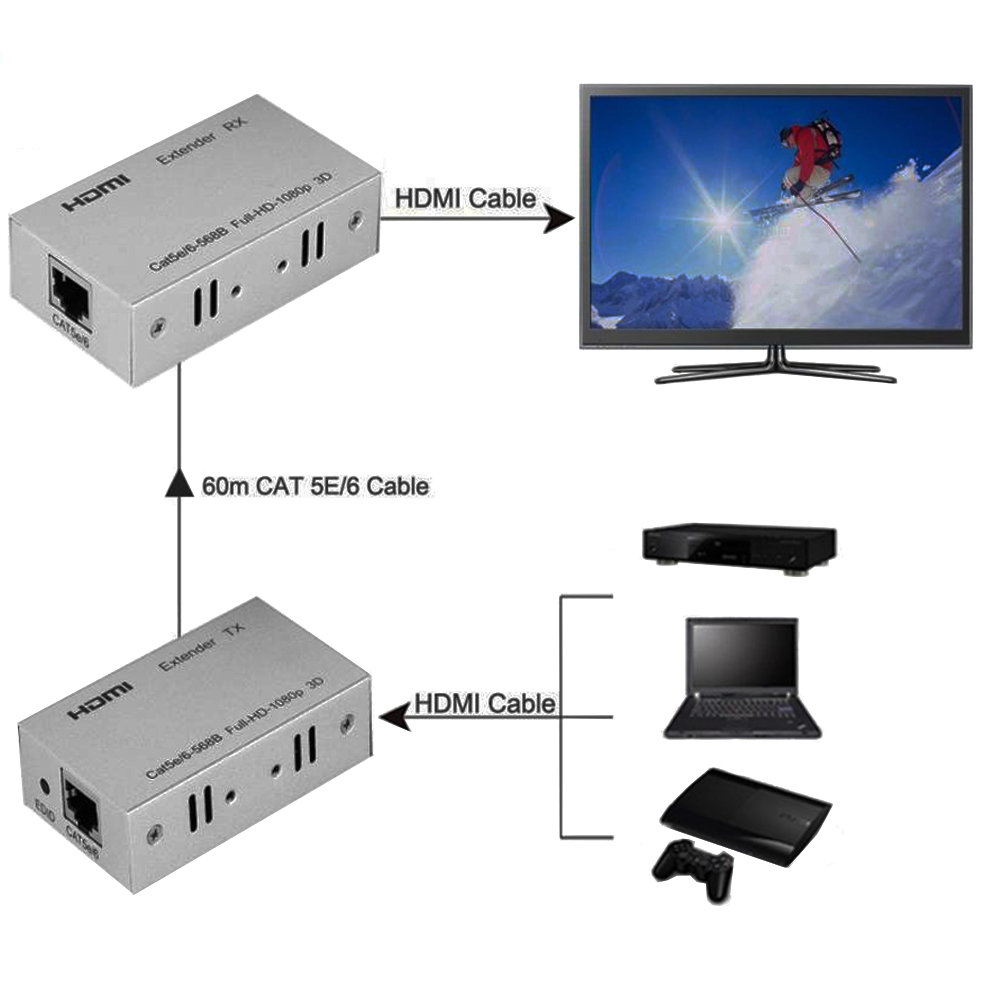 Hdmi Extension Cable Reseau Simple Hdmi Vers Rj45 60m Gearbest France