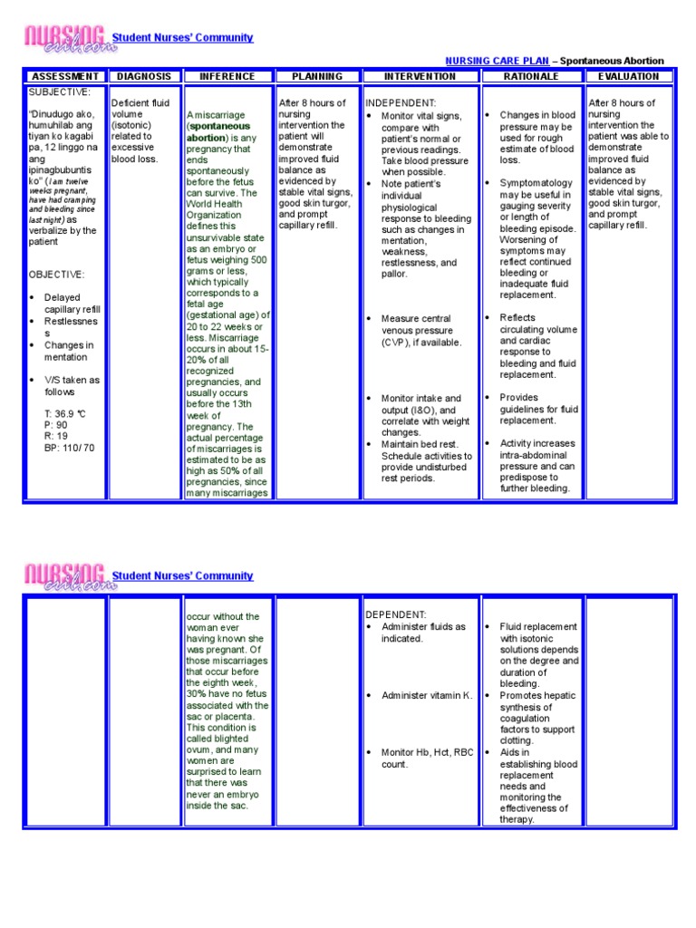 Nursingcrib.com NURSING CARE PLAN - Spontaneous Abortion | Miscarriage | Fetus