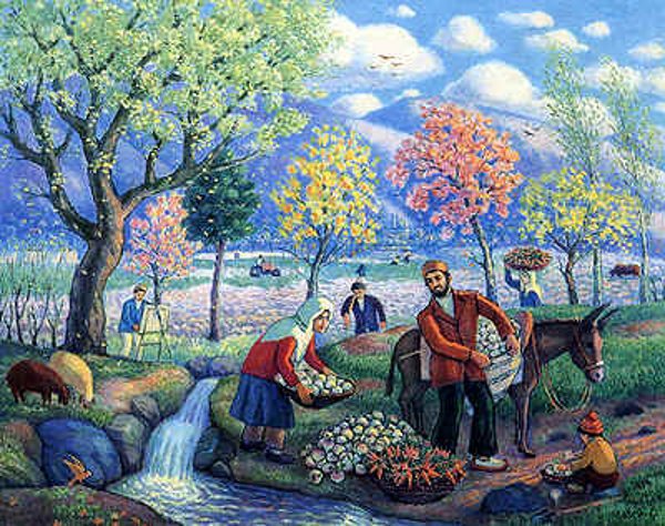 Dipinti naif primavera, autunno, inverno e con neve, quadri naif, pittura naif